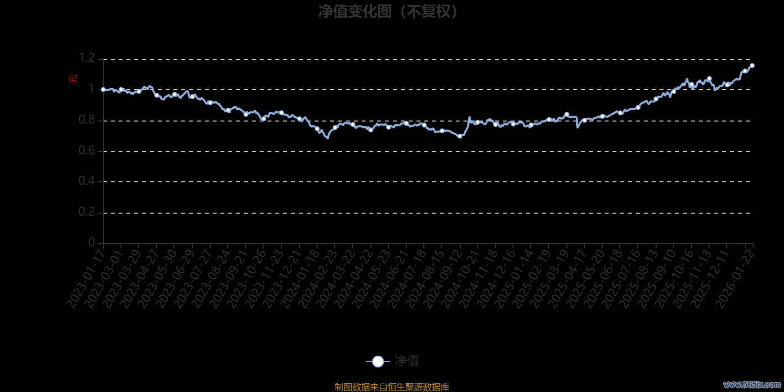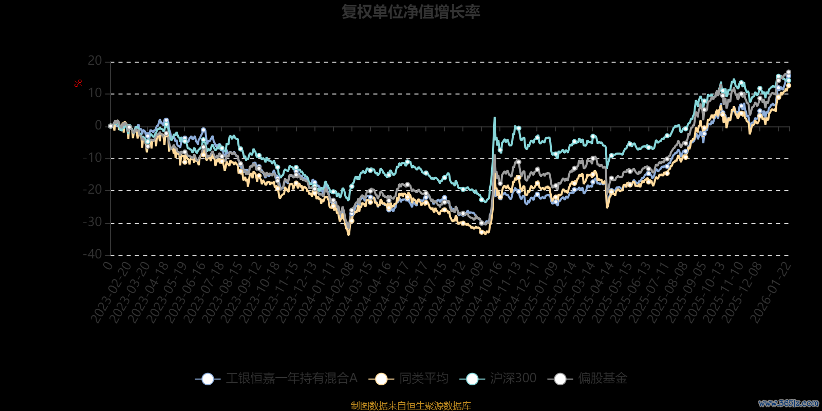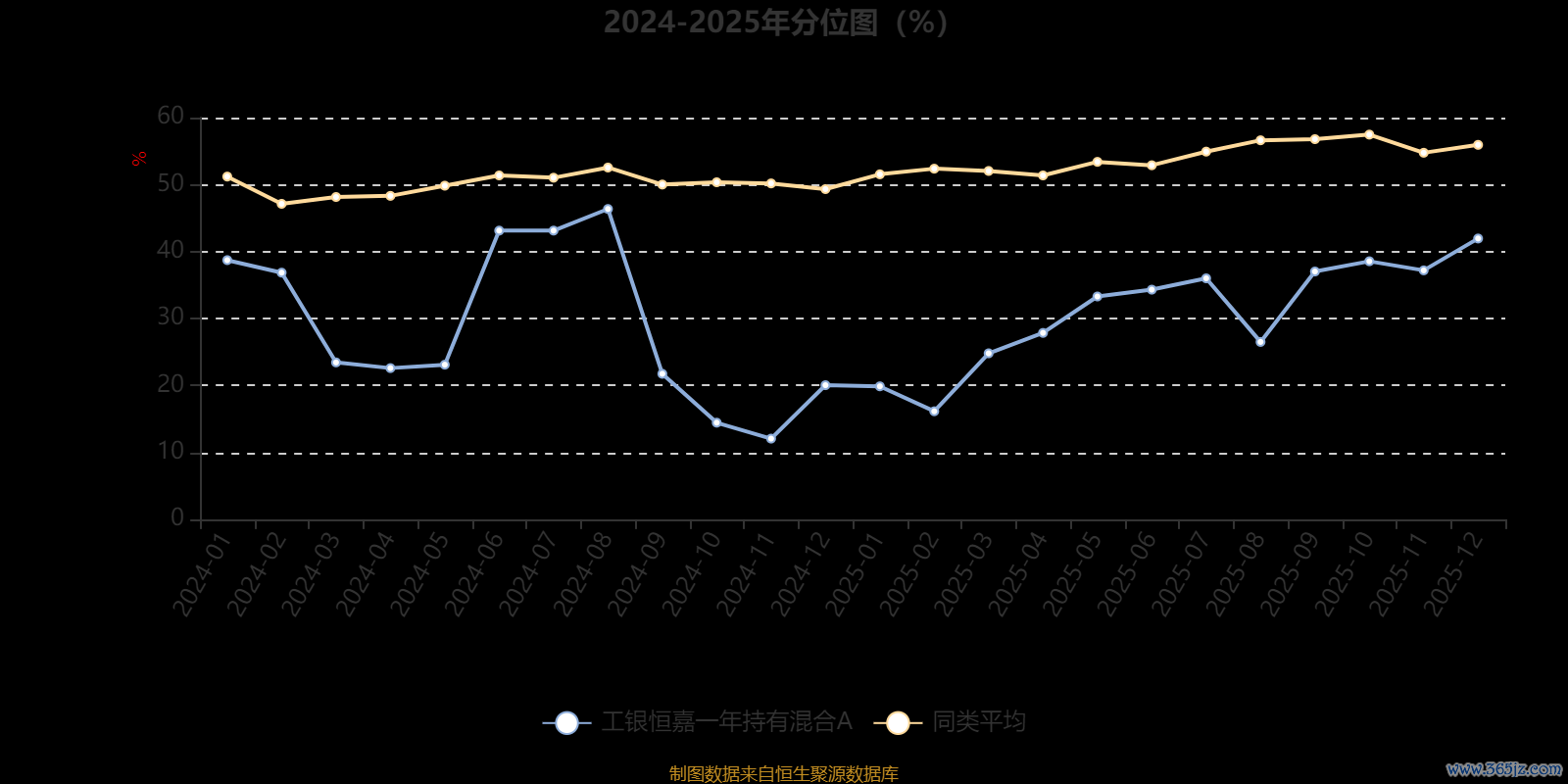 通过所选区间该基金净值增长率分位图衡牛所,可以观察该基金与同类基金业绩比较情况。图为坐标原点到区间内某时点的净值增长率在同类基金中的分位数。